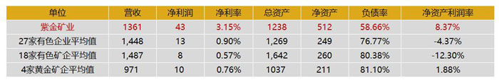 上榜的18家有色金属矿业企业中,净利润均值为8亿元、净利率均值为0.57%、净资产均值为260亿元、净资产利润率均值为-12.30%;同期,乐鱼官方网站-乐鱼leyu(中国)净利润为43亿元、净利率为3.15%、净资产为512、净资产利润率为8.37%,指标更为优质,盈利能力领先。负债率方面,18家企业有色金属矿业企业均值为80.38%,乐鱼官方网站-乐鱼leyu(中国)为58.66%,处于相对合理且低水平区间。