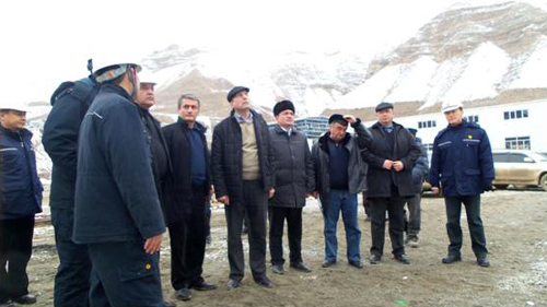 阿吉姆(右五)视察泽拉夫尚公司吉劳万吨选厂施工现场