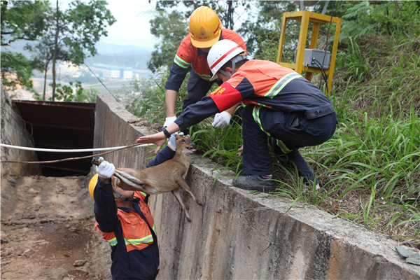 2018年4月,紫金山金铜矿员工成功救助不慎滑入选厂沉砂池内的小麂,放归自然。麂,通称“麂子”,因其天性胆小,有点风吹草动就反应过激,南方沿海一带也称“黄惊”。