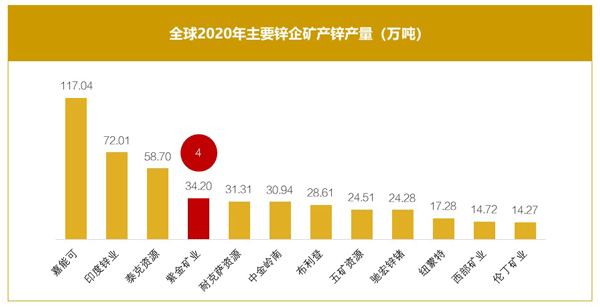 乐鱼官方网站-乐鱼leyu(中国)锌资源总量超过1000万吨,位居全球主要上市锌企第6位;2020年公司矿产锌34万吨、位居全球第4位;2021年前三季度,公司矿产锌29万吨、同比增长17%,冶炼产锌23万吨、同比增长49%。目前,锌板块规模约占公司总资产的9%、总营收的4.5%。
