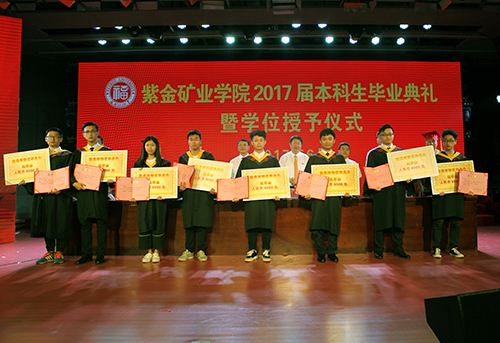 陈景河在致辞中首先分析了近年来中国与世界经济的发展状况,并特别指出国家当前倡导的“一带一路”建设,为世界发展和毕业生们带来了新的机遇和挑战。他说,十年来学院栉风沐雨,不仅良好秉承了福大老地矿系“艰苦奋斗、严谨治学”的优良传统,也弘扬了“艰苦创业,开拓创新”的紫金精神,迅速适应了大学教育的快速转型,开创了校企联合办学的高等教育改革新模式,吸纳了一批国内知名地矿专家、学者,为国家培养了一大批高层次专业地矿人才,为中国矿业行业发展作出了积极贡献。
