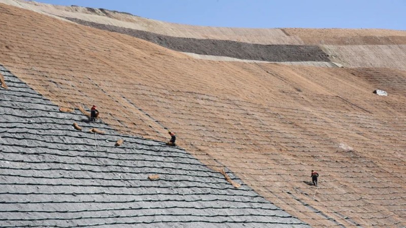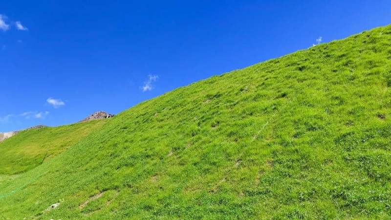 他们的工作地点在青海德尔尼铜矿4386米的采场边坡区域,高海拔、缺氧、低温、强紫外线……需要戴头脸全包且厚厚的防晒面罩,钻孔、挂网、喷播、铺草毯,在他们的巧手下,每一寸裸露的土地都会“穿上”崭新的绿色衣裳。
