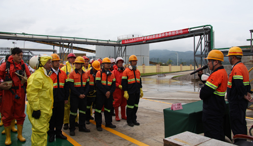 6月14日下午,紫金铜业与工业园区管委办在铜业公司发烟酸库联合举办发烟酸泄漏应急救援演练。