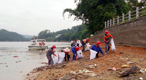 贵州紫金在宣传栏、主干道张贴保护环境的主题宣传画,向广大员工传递“保护环境,人人有责”的文明理念。在世界环境日当天,贵州紫金经营班子带头、各行政部门30多名员工参与,清理公司外环路边沟垃圾和淤泥。并组织人员捡拾尾矿库周边绿化区域内的白色垃圾。