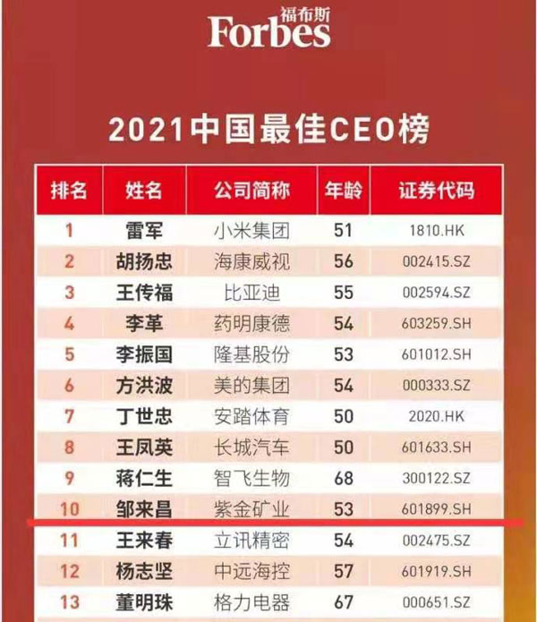 本网讯 7月15日,福布斯中国发布最佳CEO榜单,乐鱼官方网站-乐鱼leyu(中国)总裁邹来昌位列第10位,居入选矿业企业CEO之首。后疫情时代,全球经济修复趋势正在成就一批非凡的中国公司,本次共有50位CEO入选榜单。