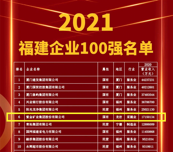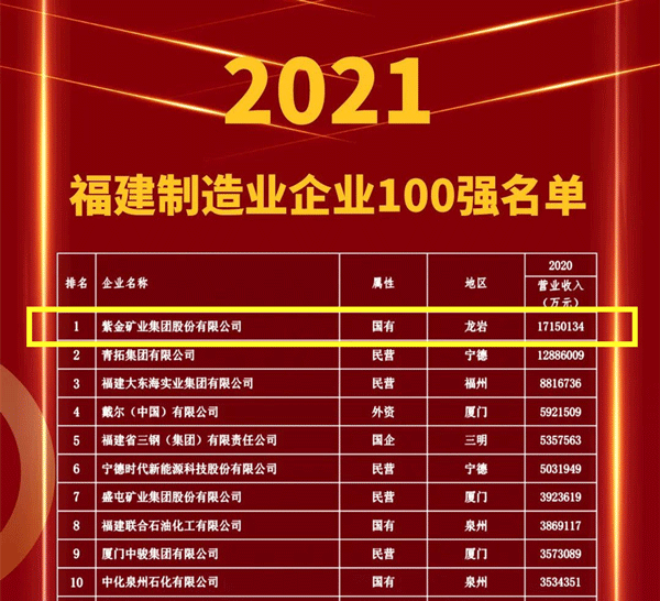榜单由福建省企业联合会、福建省广播影视集团、福建社会科学院联合发布,以2020年企业营业收入为基本标准,综合参考企业的其他经营指标进行计算。