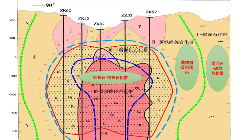 沙坪沟钼矿纵Ⅱ剖面蚀变分带图