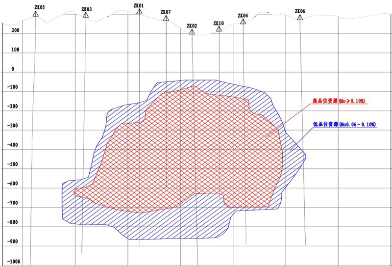 从资源体量看,达到233.78万吨,单体储量居全球第一位;从资源禀赋看,平均品位为0.143%,其中0.3%以上高品位钼金属约63万吨,资源价值巨大,而国内65%钼资源品位低于0.1%;从开发程度看,矿体厚大集中,见矿厚度平均660米,仅有一个形似“金苹果”的主矿体,约占总资源量的99.9%,适合大规模地下开采;这成为其未来实现低成本开发、高效投资回报、形成强市场竞争力的三大优异“天赋”。