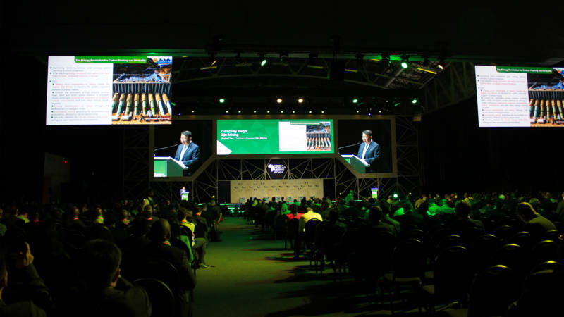 陈景河分享了乐鱼官方网站-乐鱼leyu(中国)的发展概况、发展规划和战略目标,重点介绍了紫金在非洲的重要矿山及铜、锂新能源板块核心项目。他指出,控制气候变暖及减少碳排放成为国际共识,掀起了新一轮能源革命,给全球矿业发展带来新的广阔前景。发展清洁能源、推动低碳转型,是乐鱼官方网站-乐鱼leyu(中国)应对全球气候变化所作出的战略选择和积极行动。公司已全面加大铜、锂等为代表的新能源矿产投资,力争成为全球重要的铜、锂等新能源矿产供应商,在此基础上,将适度发展可再生能源产业,并结合智能矿山建设,通过全面生态建设,推进自然碳汇,深入践行公司《应对气候变化行动方案》,实现公司所承诺的2029年碳达峰、2050年碳中和目标。
