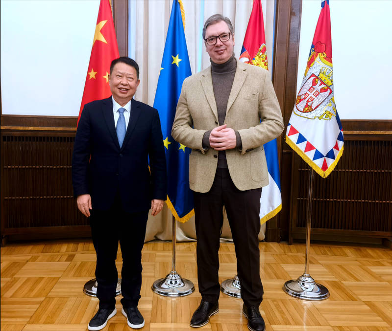 武契奇总统与中国驻塞大使陈波女士和陈景河董事长一行举行会晤