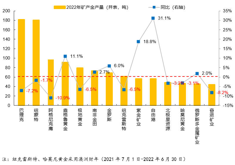 图表7:全球头部黄金企业2022年营业收入、归母净利润情况