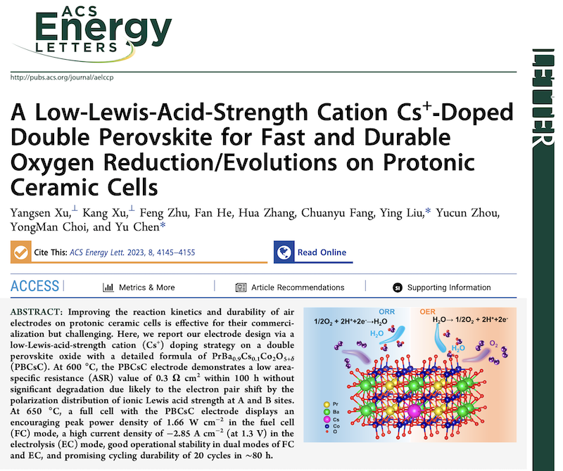 9月14日,国际能源学类顶级期刊、美国化学学会旗下杂志《ACS Energy Letters》,发表了该项以刘瑛博士、陈宇教授等为联合通讯作者的研究成果,认为达到国际领先水平,有望为氢能高效低能耗制取提供新路径。