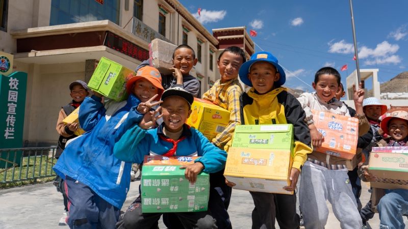 西藏翔龙矿业看望了矿区周边村庄的3所幼儿园和亚木乡中心小学,为孩子们送上了书包、饮品、面包等儿童节礼物。