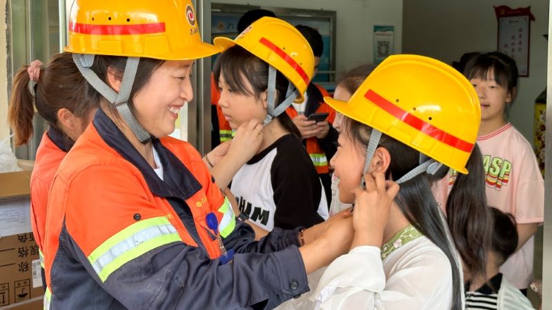 此外,紫金铜业还在“六一”旗舰,组织了“校园开放日”,来自坪埔小学的38名少先队员代表、职工子女代表到项目一线进行了参观。