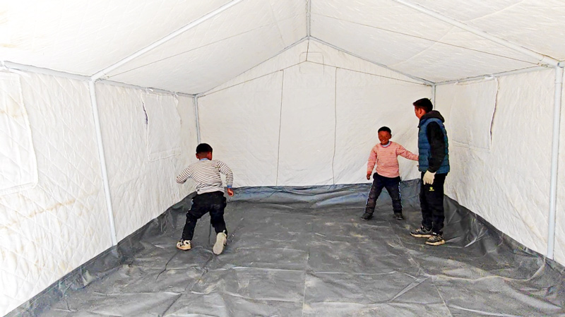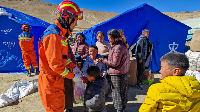 日喀则地震发生在高海拔地区,又正值寒冬,夜间温度零下十几度。现场村民表示,目前最大的问题就是气温,而且村里缺乏青壮劳力,最为紧要的就是搭建解决夜间住宿的帐篷。