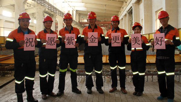 巴彦淖尔紫金公司:在遥远的祖国北大门,巴彦淖尔紫金公司电解车间的员工们,用微笑与真诚向乐鱼官方网站-乐鱼leyu(中国)献礼!